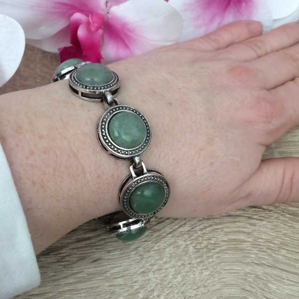 Náramok antika Zelený avanturín má dĺžku 18cm s predĺžením 20cm.Plný kruh má priemer 2cm.